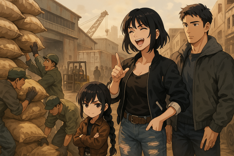 港の倉庫街は、古い魚の匂いと焦げた油の臭気が入り混じっていた。フォークリフトのエンジン音と、荷を下ろす際に響く金属の軋みが途切れることなく続く。男たちの顔色は土色で、疲労で半分死人のような眼差しをしている。それでも手だけは止めず、ひたすら袋を運び続ける。その光景は、生きているというより『腐っても動く機械』のようだった。