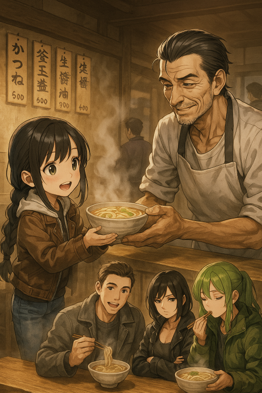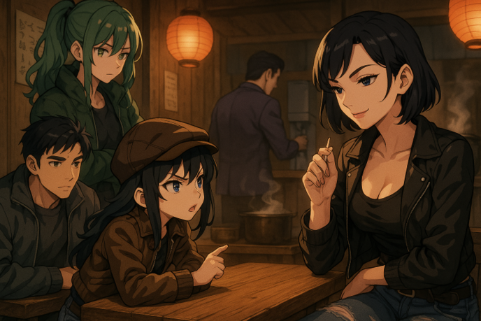 三郎はかなめの顔を見てにやりと笑って今度はランを見た。厨房からは、湯気と昆布だしの香りが漂い、客のざわめきが遠くから聞こえる。だが、このテーブルだけは、張りつめた空気が支配していた。
