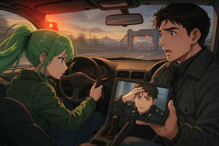 画面の中で嵯峨が頭を掻いていた。急ハンドルを切ってカウラの『スカイラインGTR』は幹線道路に飛び出した。カウラはダッシュボードからパトランプを取り出すと天井に点灯させそのまま租界へと向かった。