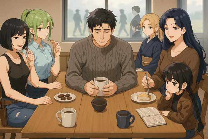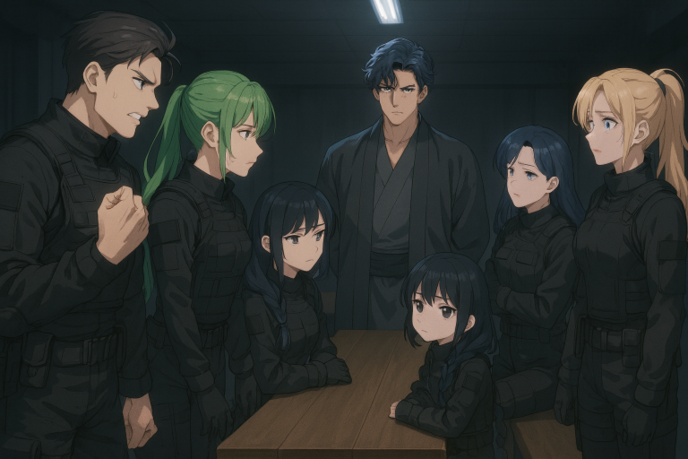 ただ何をする気にもなれない時間だけが過ぎた。食堂には他には誰もいない。時計の針だけがカチリと音を立て、誠のコーヒーはもう冷めていた。窓の外では他の隊員が訓練に向かう姿が見えるのに、自分たちはただ座っているだけ……その現実が余計に胸を締めつけた。