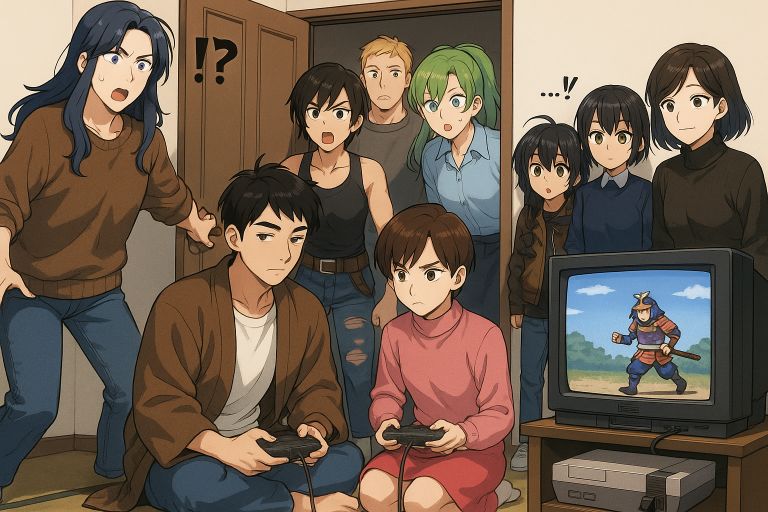 二人はテレビ画面を真剣なまなざしで見つめていた。そこには髭面の戦国武将が、甲冑姿で戦場を駆けるドット絵が映し出されている。