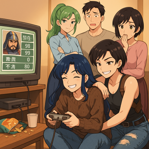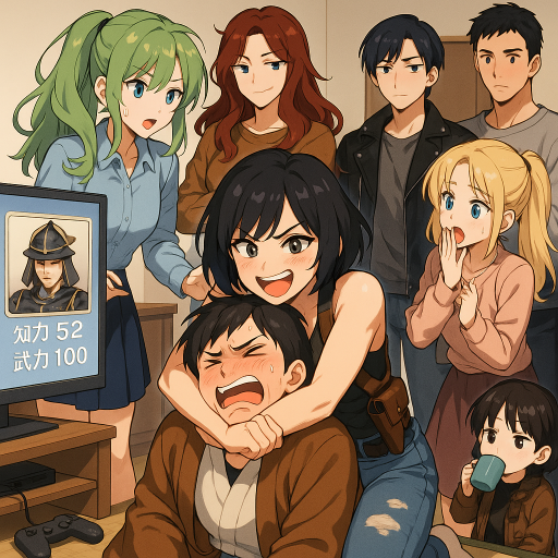 こういうゲームには詳しいアメリアはアンからコントローラーを奪うと武将の能力値の確認を始めた。ついてきたかなめも生暖かい視線でアンと西を見比べながら画面を覗き見ていた。