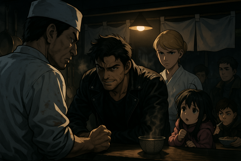 それまでうどんが湯の中で踊る様を見るのに夢中だったサラが止めに入った。それでも島田は不敵な笑みを浮かべて大将をにらみつけた。
