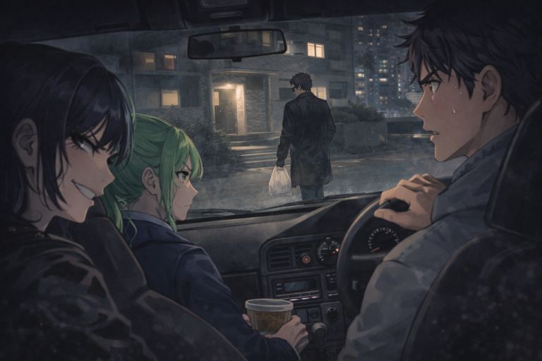 「下手に動かなかったのは正解だろ。それにいくら革命家だってコンビニくらい行くんじゃないか?刑事事件の関係者でも食事くらいはする。ただ、場所が場所だ。奴の目的はおそらく片桐博士だ。そう見て間違いないだろう」