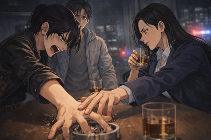 あてつけの笑み。そして片桐博士は再びウィスキーのグラスに手を伸ばした。誠は黙って上官の二人を見た。