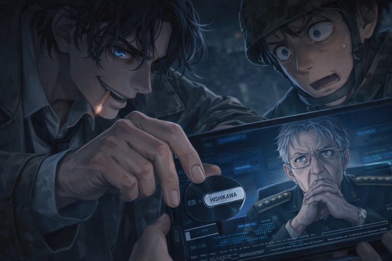 嵯峨は画面に映る憔悴した細野陸幕長を眺めた。明らかに会議漬けと言う髪は乱れ、口の前に手を組んだまま目だけが画面を見つめていた。