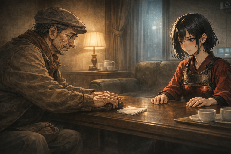 ようやく救われたような話を聞いたかなめは溜まった涙を素早くふき取った。自然に笑みが浮かんで老人の言葉で自分の何かが救われた様にかなめは感じた。