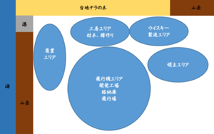 「良いですね。じゃあ、ウイスキー製造エリアは、工房エリアの隣、東側にしましょう」