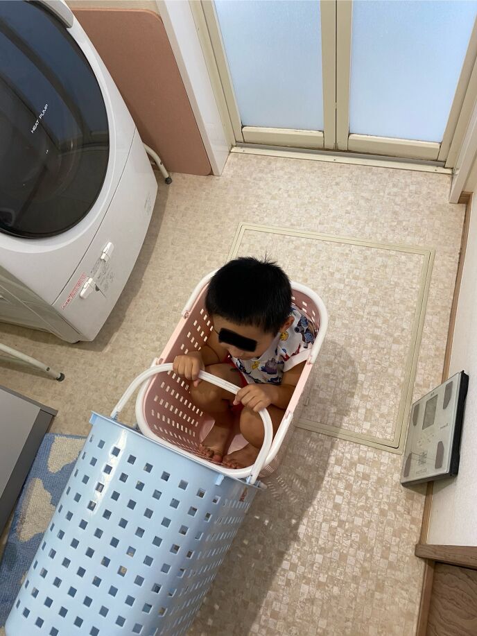 子供ってカゴとか段ボールに入りたがるよね(^-^)