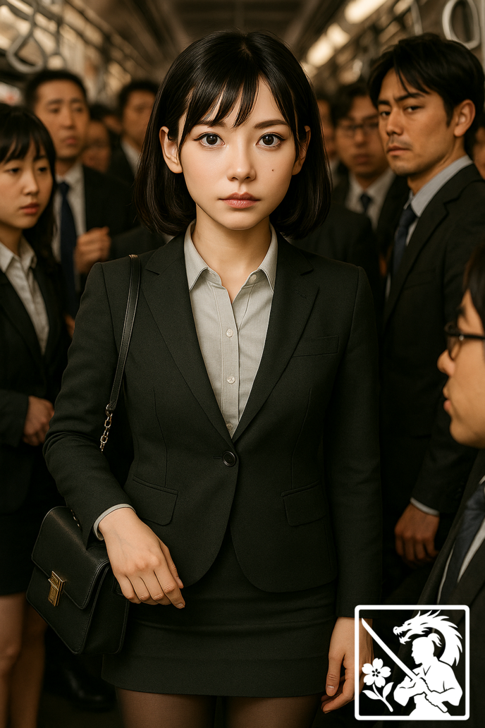 女性の表情は硬直し、身体が強張っているのが見て取れた。混雑で身動きも取れず、自分が狙われていることにようやく気づいたらしい。周囲の乗客も異変を察し、ざわりと空気が揺れたが、誰も動けなかった。恐怖と嫌悪が混じった沈黙が車内を包む。