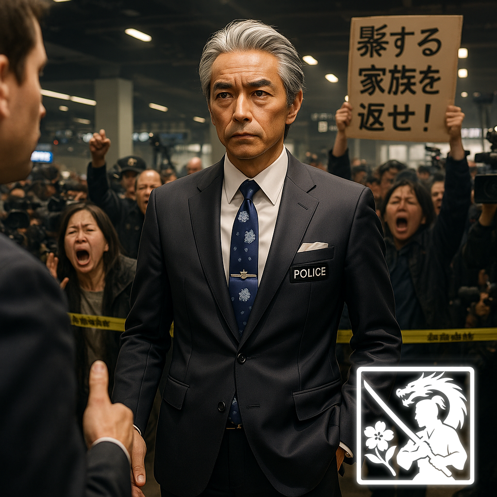 「何!?一体何があったんだ!?」遠くで、張り詰めたような声が弾け、警備員のブーツが慌ただしく近づいてくる音が聞こえた。騒ぎを聞きつけたデモ隊と旅行客が、一斉に首を伸ばし、好奇と警戒の入り混じった視線が、俺たちに絡みついた。