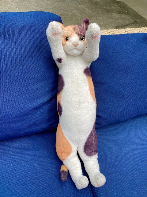 賞味期限が近付いた頃、お菓子は母の胃の中に落ち、テディベアは我が家の次女のもとにやってきて、次女がテキトーにつくったフェルトの服を着せられた。