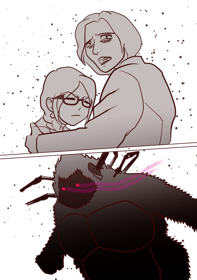 勇ましかったレジーが不安なのか仲良の腕にしがみ付いてきた。