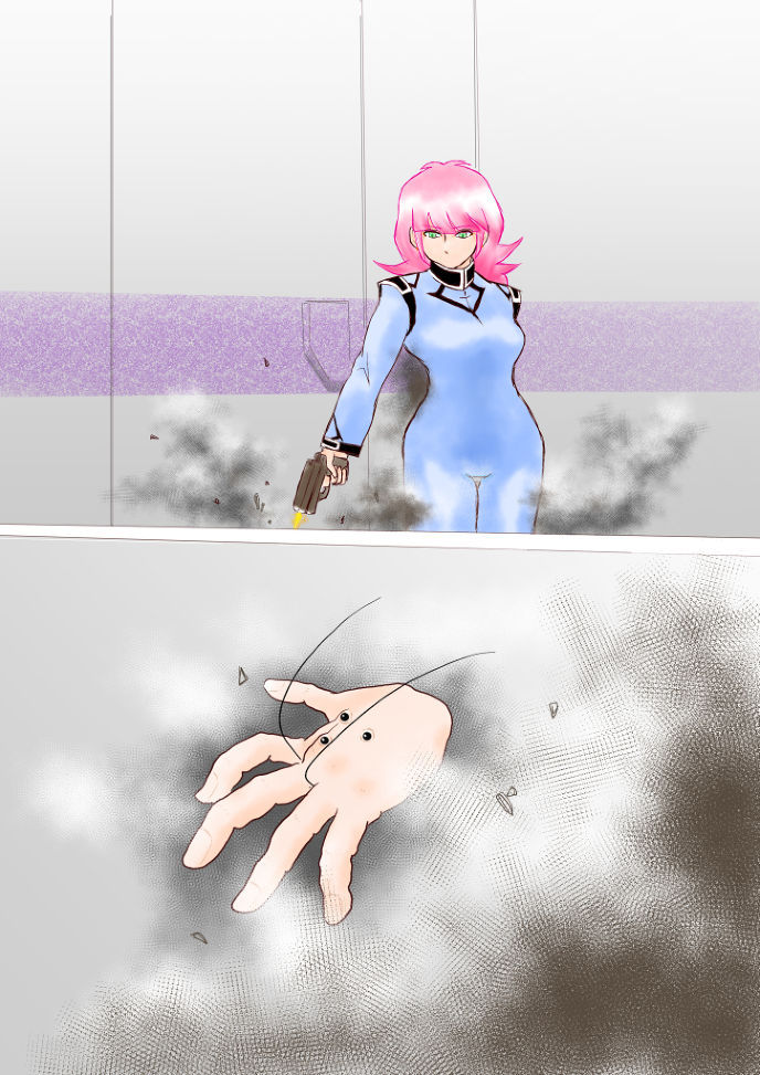 SDR-03は握ったままでいた銃を視線の先へまっすぐ突き出すと機械的な動作で6発全弾打ち尽くすと銃をホルスターに戻しながら目標へ突進した。