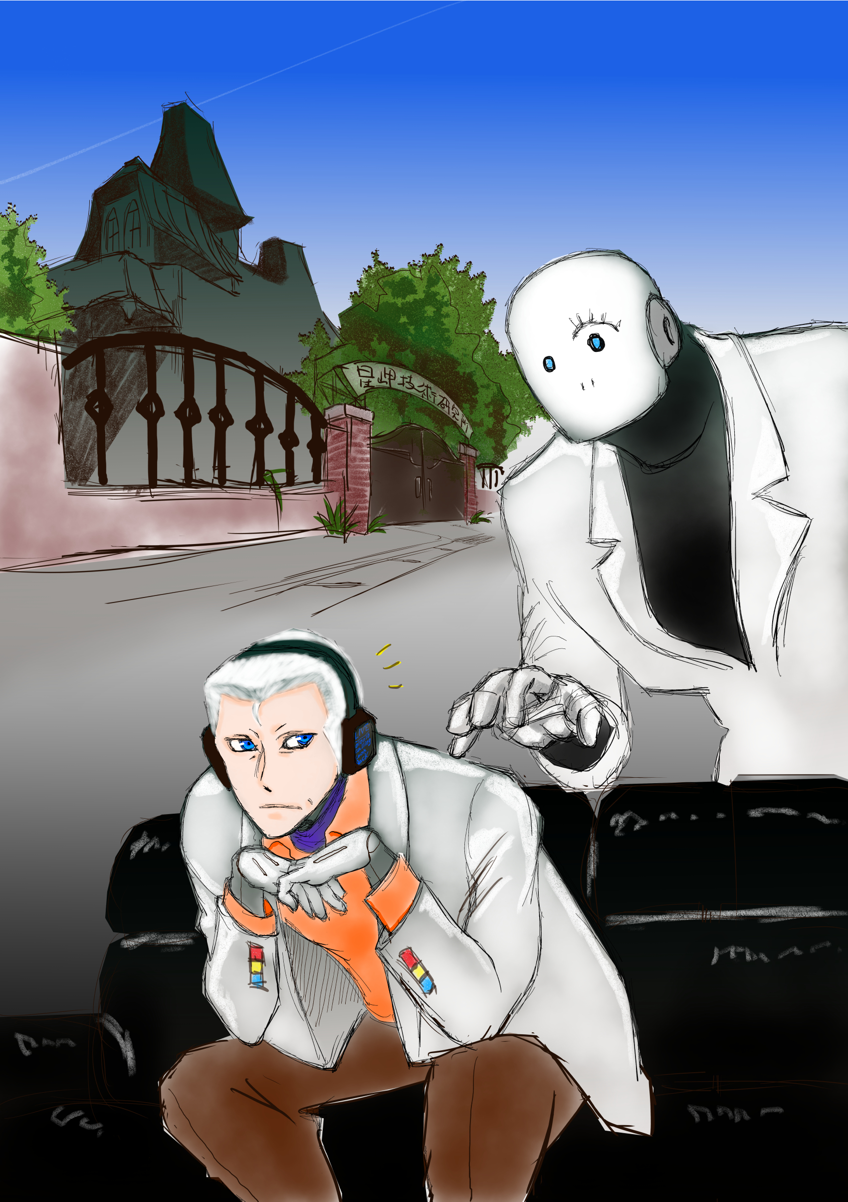 助手はのっぺりした白い仮面の目の位置に開いた二つの穴をチカチカと青く点滅させると、折り曲げていた上半身を起こして起立した。