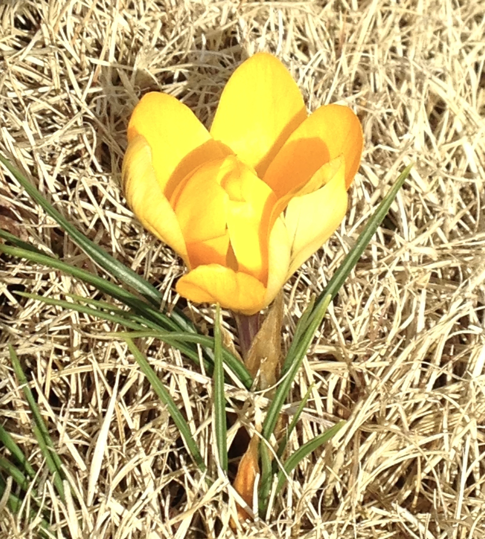 母子手帳を懐に、丘の上の植物園に回り道した。雪解けの足元に、春を告げるクロッカスが小さく存在を主張していた。