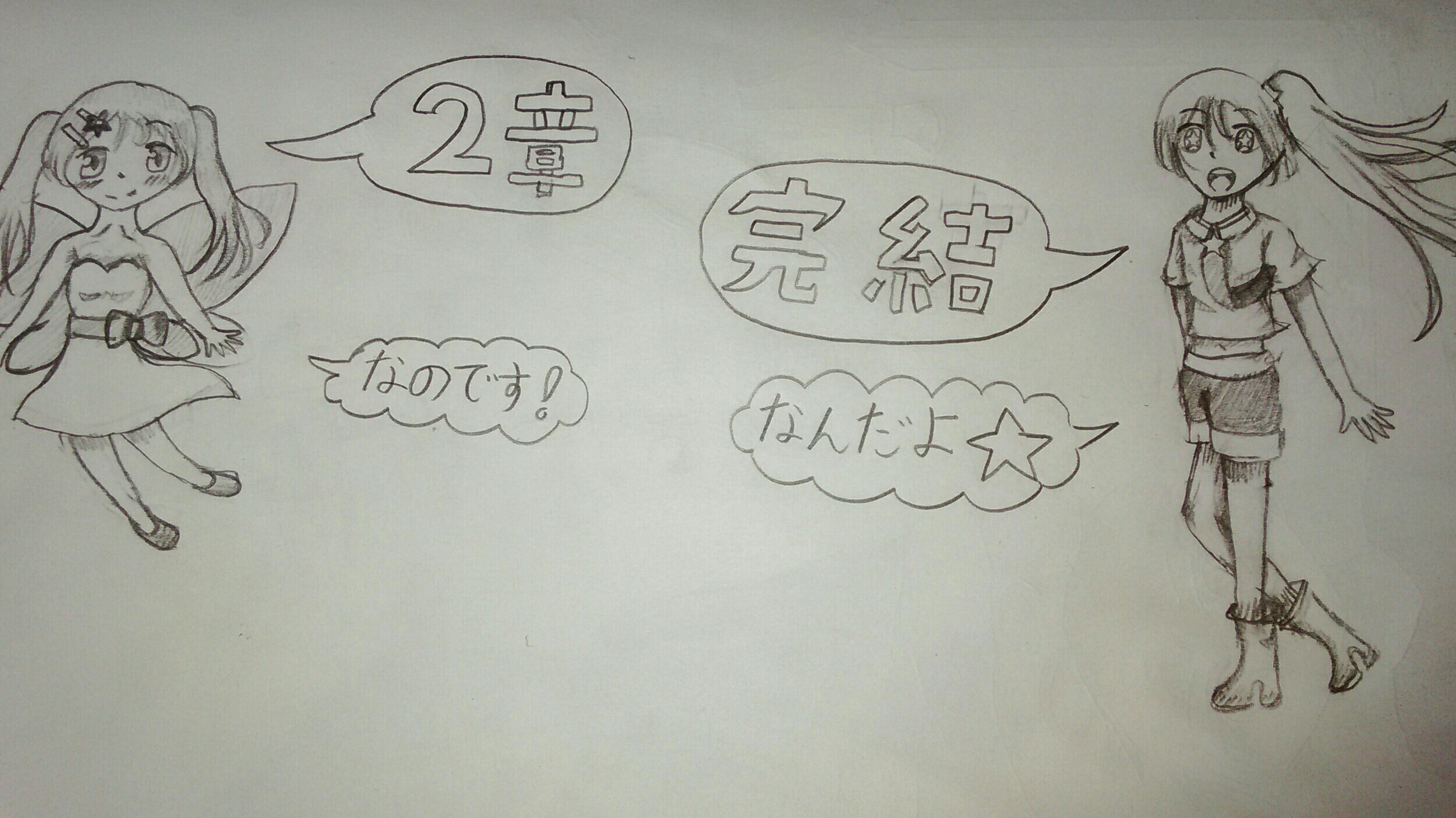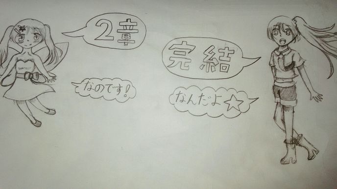 それで、1章完結イラストがあって2章が無い、というのが個人的になんか嫌なので、描きました。鉛筆だけですが…………。