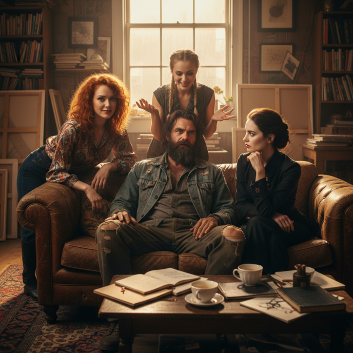 「おい、女ども!こっちに来い」フロランが同棲している3人の女を自分の部屋に呼びつけた。3人の女とソファの上で戯れる。