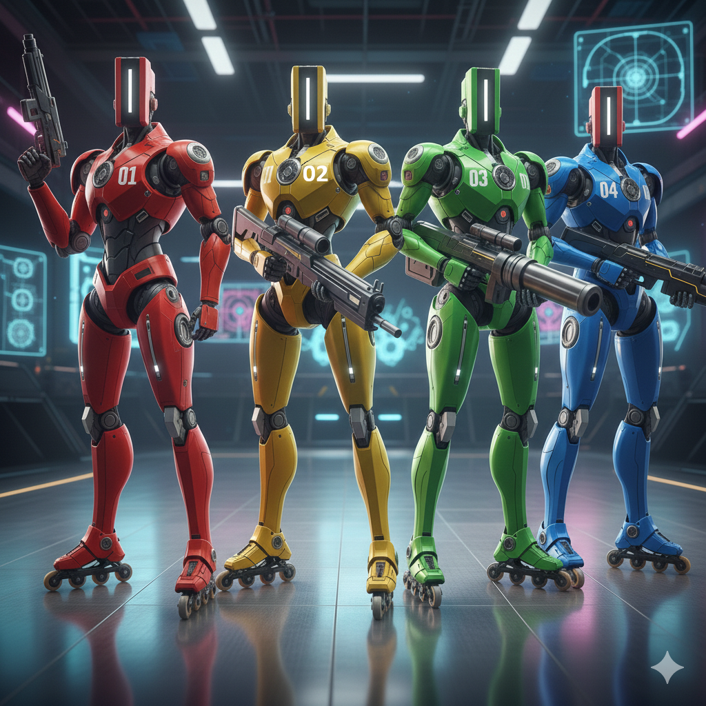 ゲアルは急に方向転換して『赤 01』のほうに向かって全力で走り出した。一瞬だが『赤 01』の反応が遅れ、手元の銃を構えようとする瞬間を狙って、左手でその銃を掴んで自身の体から銃口を逸らし、右手に持っていたマグナムを『赤 01』の長細い顔に密着させてぶっ放した。『赤 01』のbotの顔が天を仰ぐ。動きが止まり、その間にも数発の弾丸をボディにぶち込んだ。