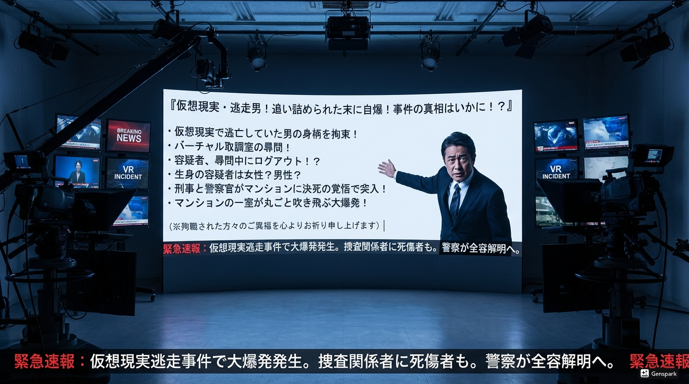 仮想現実の取調室から男が消えたのはどうやらVRゴーグルが頭から外れたかららしい。「もうおしまいだ。オレは助からねぇ!」男が喚いている。