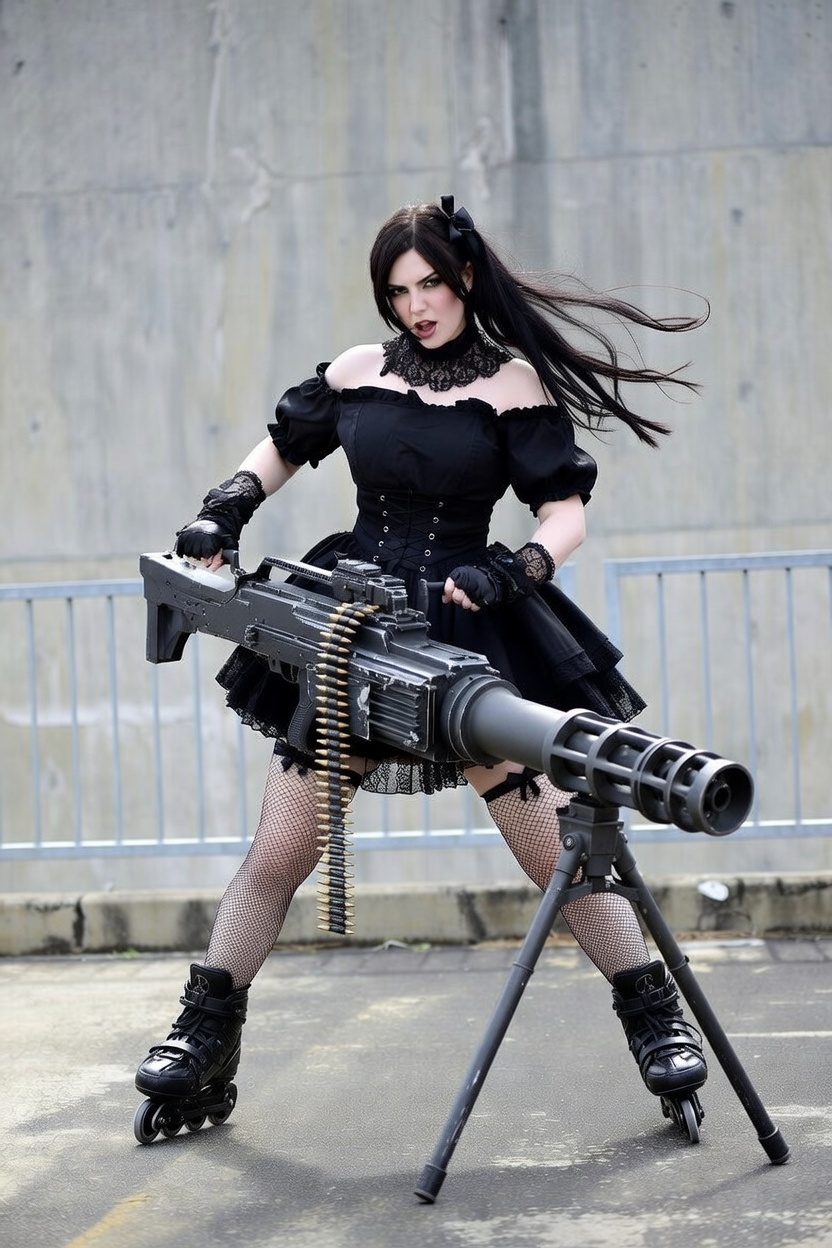 ロープをかけられて自由を奪われ、後ろから胸を揉まれている状態から脱するためにジェニー・アリスは膝をできるだけ高い位置まで上げて、ガーターベルトに忍ばせていたナイフを手に取った。そのナイフをジャンピエロの太ももめがけて思いっきり刃を立てた。「ぎょえー!痛ぇー!」ジャンピエロが思わずしゃがみ込む。その隙にアリスはロープを切り落とし、武器選択画面を表示して素早くスクロールし相棒を選んだ。戦闘ヘリ、大型車両の後部に搭載するミニガンM134が三脚付きで目の前に現れる。