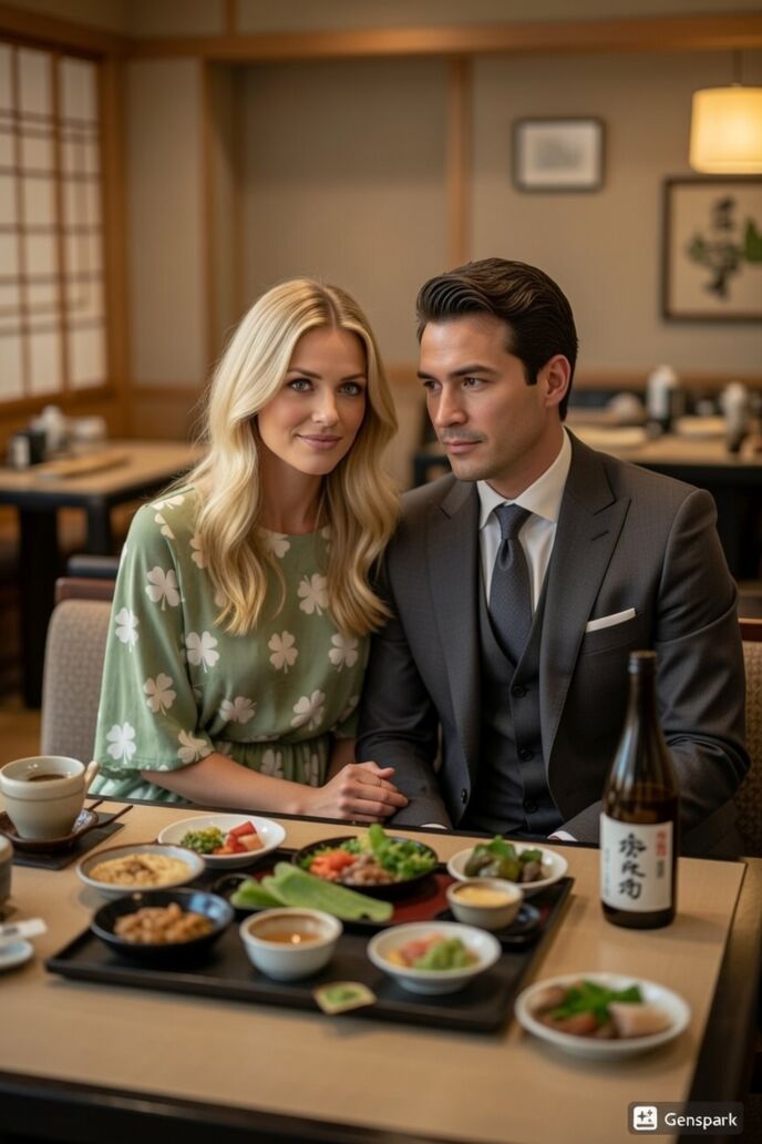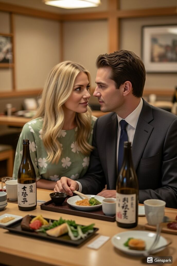 「お寿司を食べたことはあるかい?」「いいえ、私はないわ。食べる機会がなかったの・・・いえ、ウソをついたわ。どうしても見た目と生ものっていうのが私にとって勇気をもって一歩踏み出せない原因になっているようだわ」彼女がお寿司の話題になると急に焦りはじめて言い訳を並べているのが可愛く見えた。ケネス・ブルックはそんな彼女を微笑みながら「じゃあ食べてみようか」と言ってマグロに醤油につけ、お箸で摘まんで彼女の口元にマグロのお寿司を運んだ。