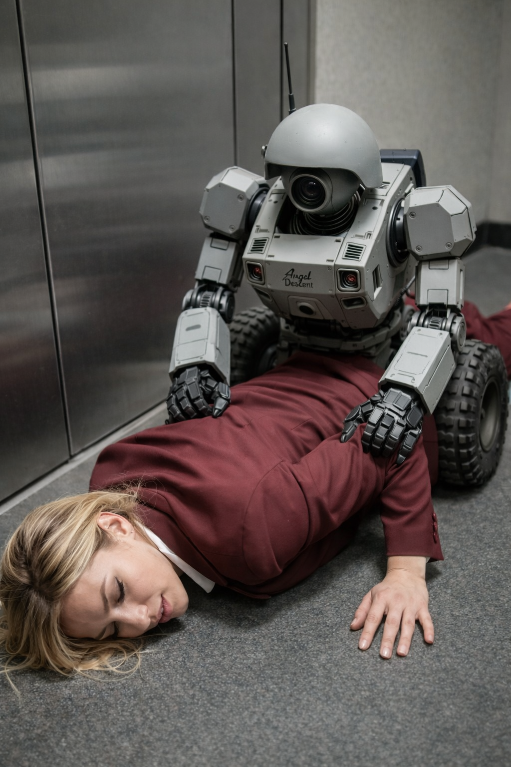 ゲレーテ・ヘンラインはエレベータのボタンを押し、研究所のほうを見渡し、誰も近づけないように銃を構えたまま威嚇している。エレベータの到着音が鳴り、彼女は心の中で少しホッとしていた。(この状況をうまく切り抜けられた)と胸を撫でおろしたが、エレベータのドアが開いて振り向くとSmall SERAPHがそこに立っていた!彼女は素早く銃をSmall SERAPHに向けて数発の弾を撃ったがビクともしていない。