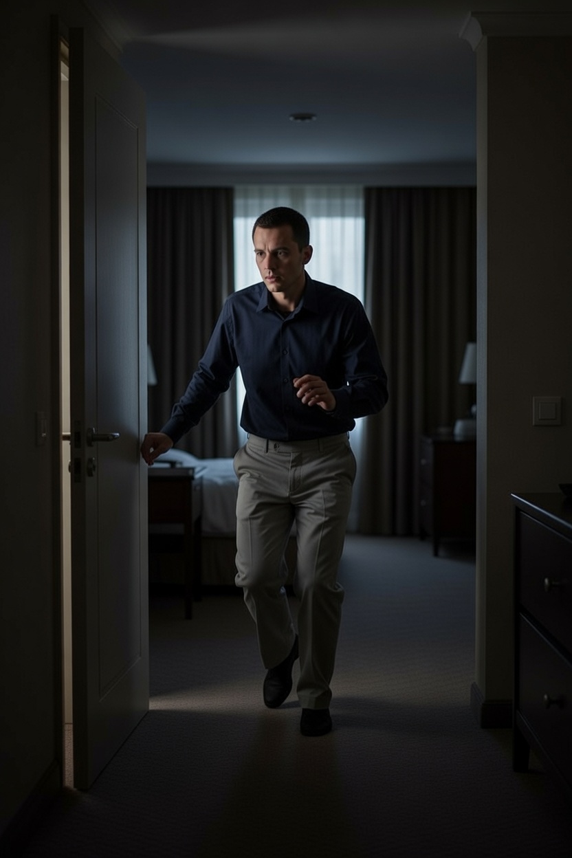 「アッハッハッハ♪飲んじゃったね♪」部屋の灯りをつけてゲレーテが笑っている。その口元にはコンドームが咥えられていた。彼女は持ち物をすべて没収され、部屋にある使えそうなものを探していたときにベッド横のナイトテーブルの引き出しに忍ばされていたコンドームに目をつけていたのだ。彼女は口に咥えたコンドームをゴミ箱に捨てるとバスローブの帯をパウルに巻き付けて身柄を拘束し、彼のポケットの持ち物をすべて取り出した。