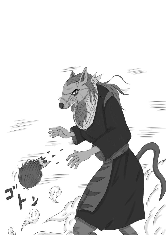 その華奢な体に纏う黒いローブの上に見える顔はまごうこと無きネズミの顔で、その両手には誰かの生首が二つ無造作に抱えられていた。
