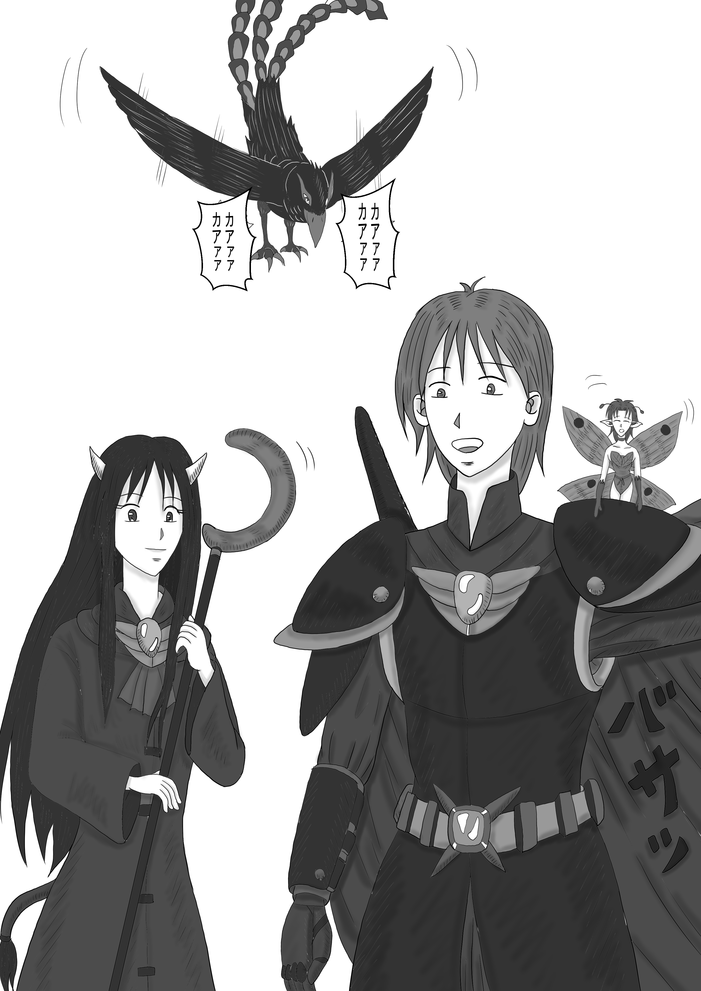 文句を言う蛾の妖精のルナを尻目に、構わず二階へと慌てて舞い戻っていくラエルロットの後ろ姿を見つめていた、黒神子レスフィナ・犬人族のシャクティ・白魔法使いのタタラの三人はくすくすと笑いながら綺麗な朝日が昇る暁の空をバックにラエルロットのこれからの旅の成功を祈る。