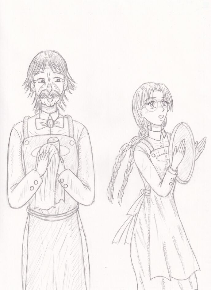 黄木田源蔵店長と緑川章子のイメージイラストです。