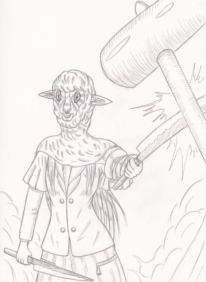 狂人・悪魔の水瓶に挑む、白い腹黒羊こと羊野瞑子の図です。