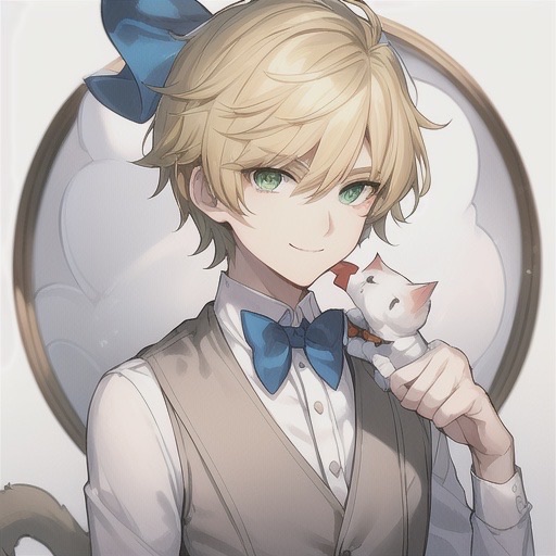 -白髪の髪に黒色の目、緑色のハンマーを持っている