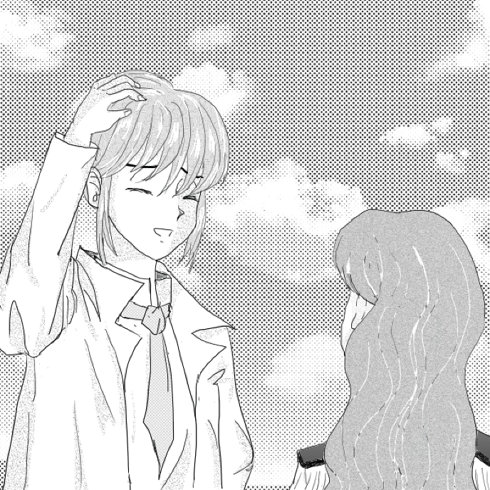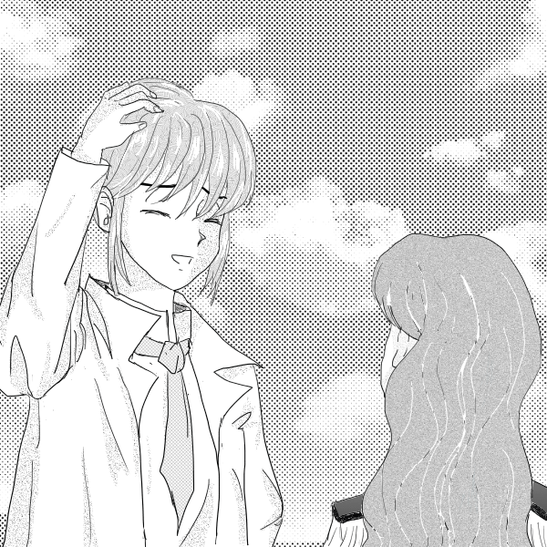 「いやあ・・・君はそんなに気にしなくていいよ。大体、草むらの上に眼鏡を置いておいた僕が悪いんだから・・。あれじゃ、誰だって踏んづけていたよ。」