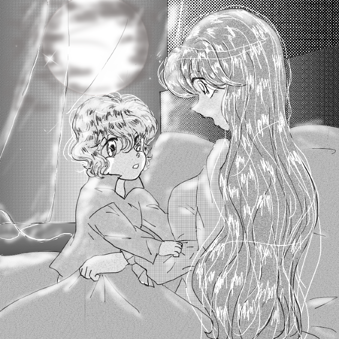 「ねえ、カーテンを開けて窓の外を見て。今は満月が雲で隠れちゃっているよね?」