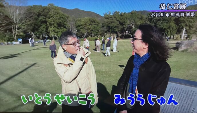 ・恭仁宮跡(くにきゅうせき)(山城国分寺跡/やましろこくぶんじあと)、グラウンドゴルフに興じる人々をバックにオープニング。