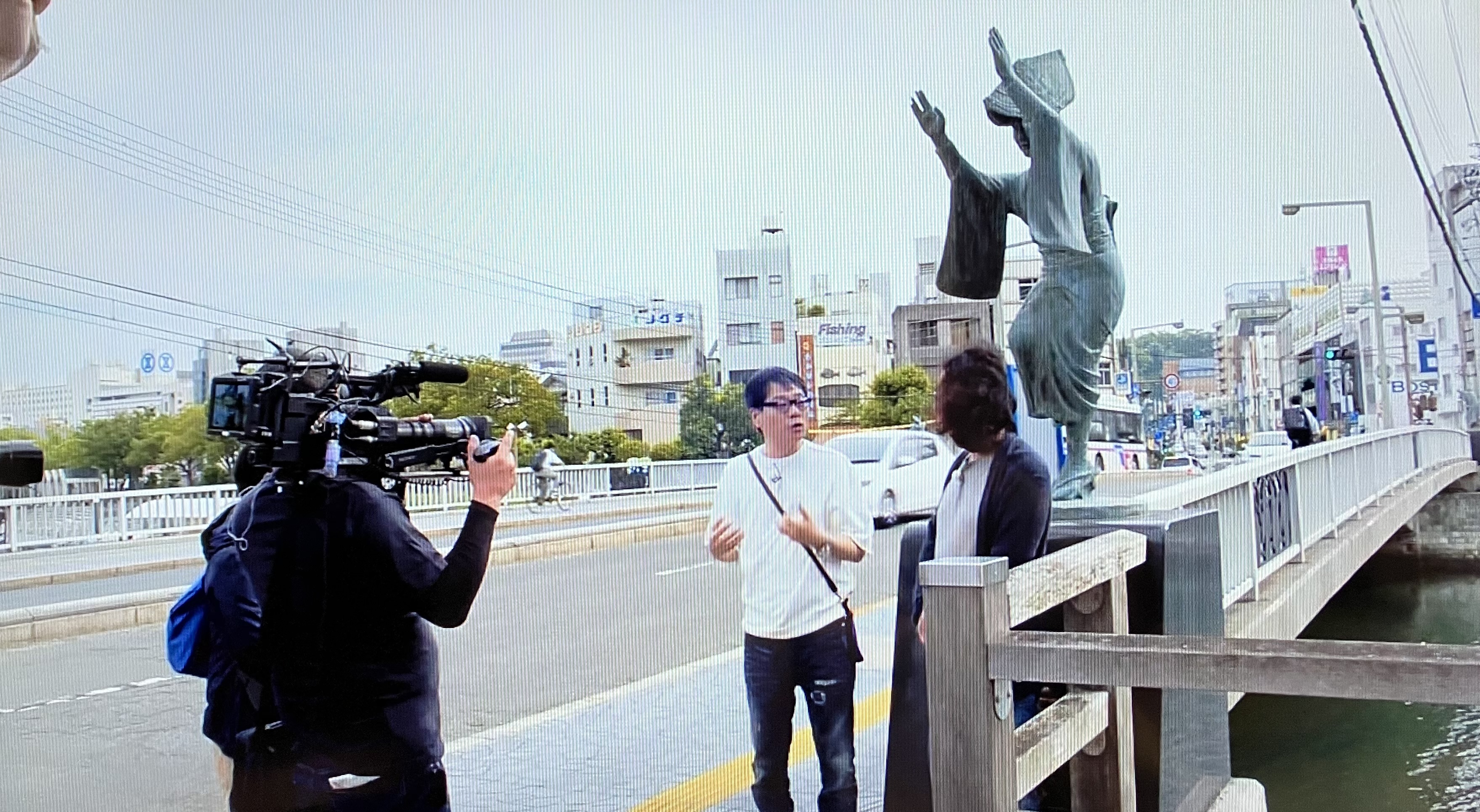 橋の上、阿波踊りの女性像の元。