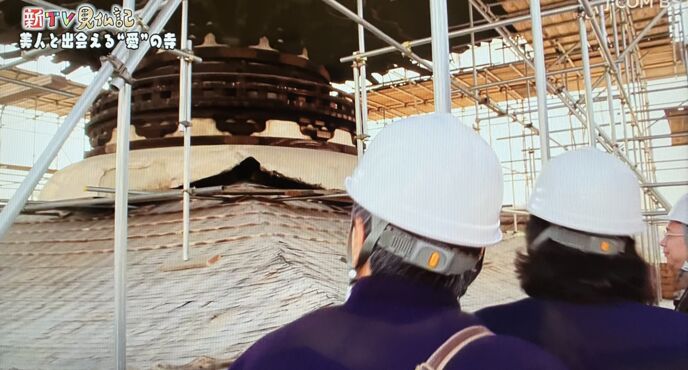 そして“愛の寺”で生きてるような愛染明王を特別に拝んだ後、修復工事の重文・多宝塔でダブルヘルメット体験も!