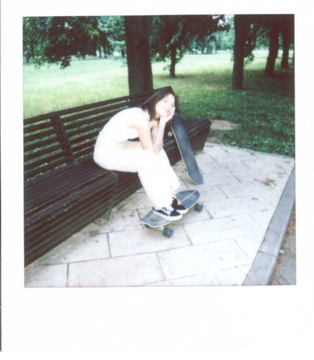 偶然にも、私もボーダーのTシャツに、白と黄色のブロックチェックのフレアスカート(黄色は青の補色!)を着ていた。