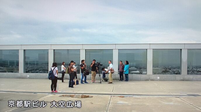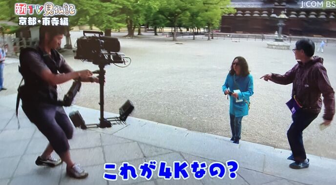 京都駅ビルの大空広場からスタート。いとうが4Kについて説明するが、みうらは理解していない様子。