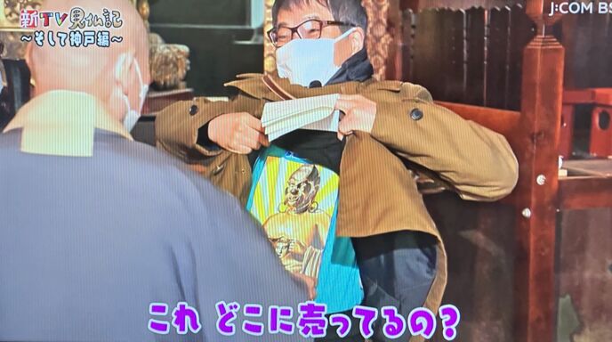 いとうさん、ここでコートをめくって、羅怙羅(ラゴラ)尊者さん柄のTシャツを見せます。