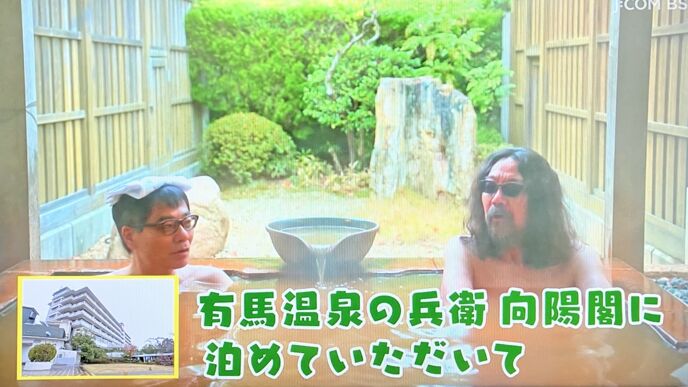 宝塚見仏から一夜明け、有馬の湯で朝風呂を決め込むみうらじゅん&いとうせいこう。