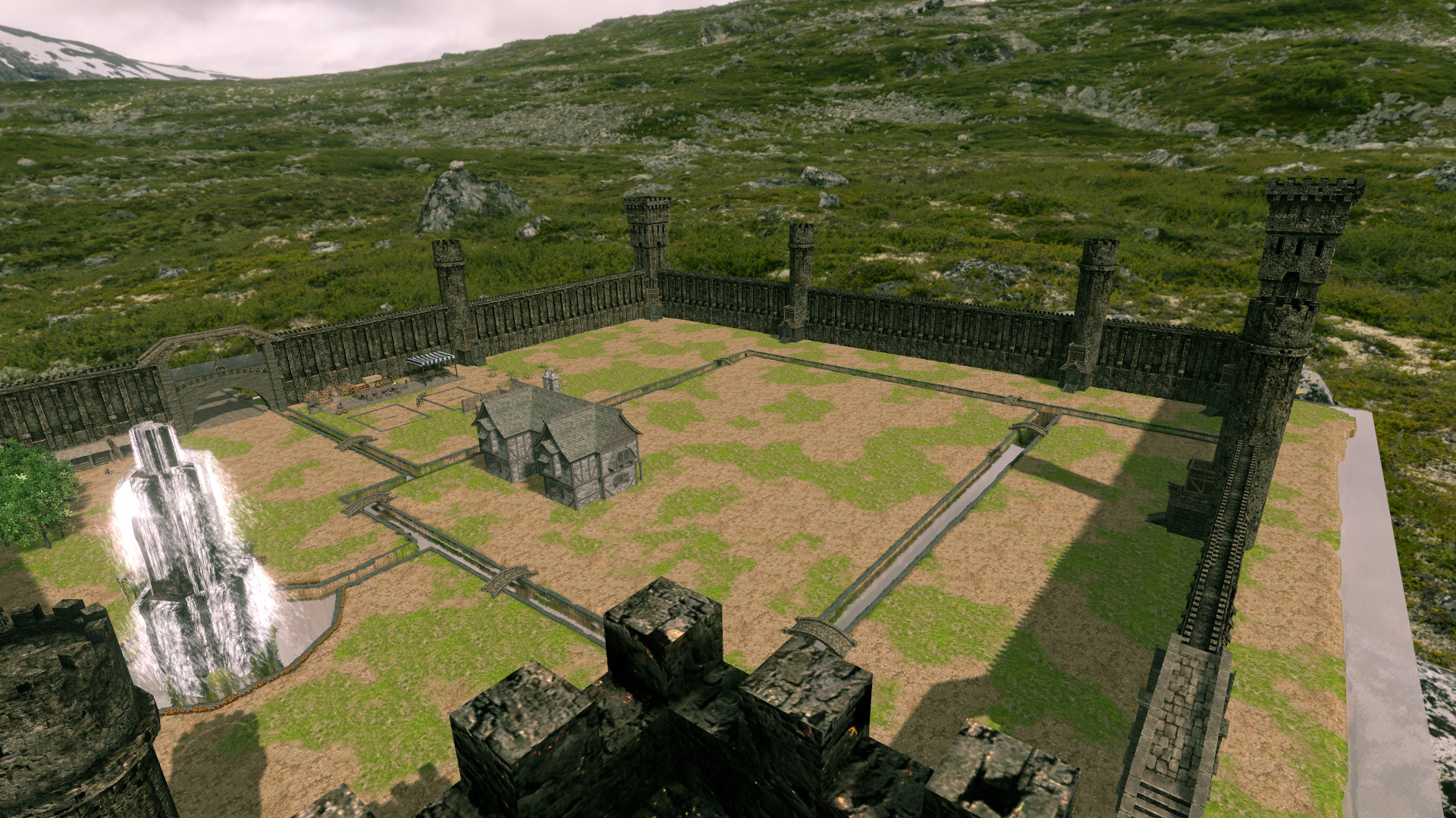 ついでにその巨大オブジェから出た水が、拠点内に張り巡らされた小さな水路を伝って下水道へと流れていき、最終的にはその水が堀へと流れるようになっている。