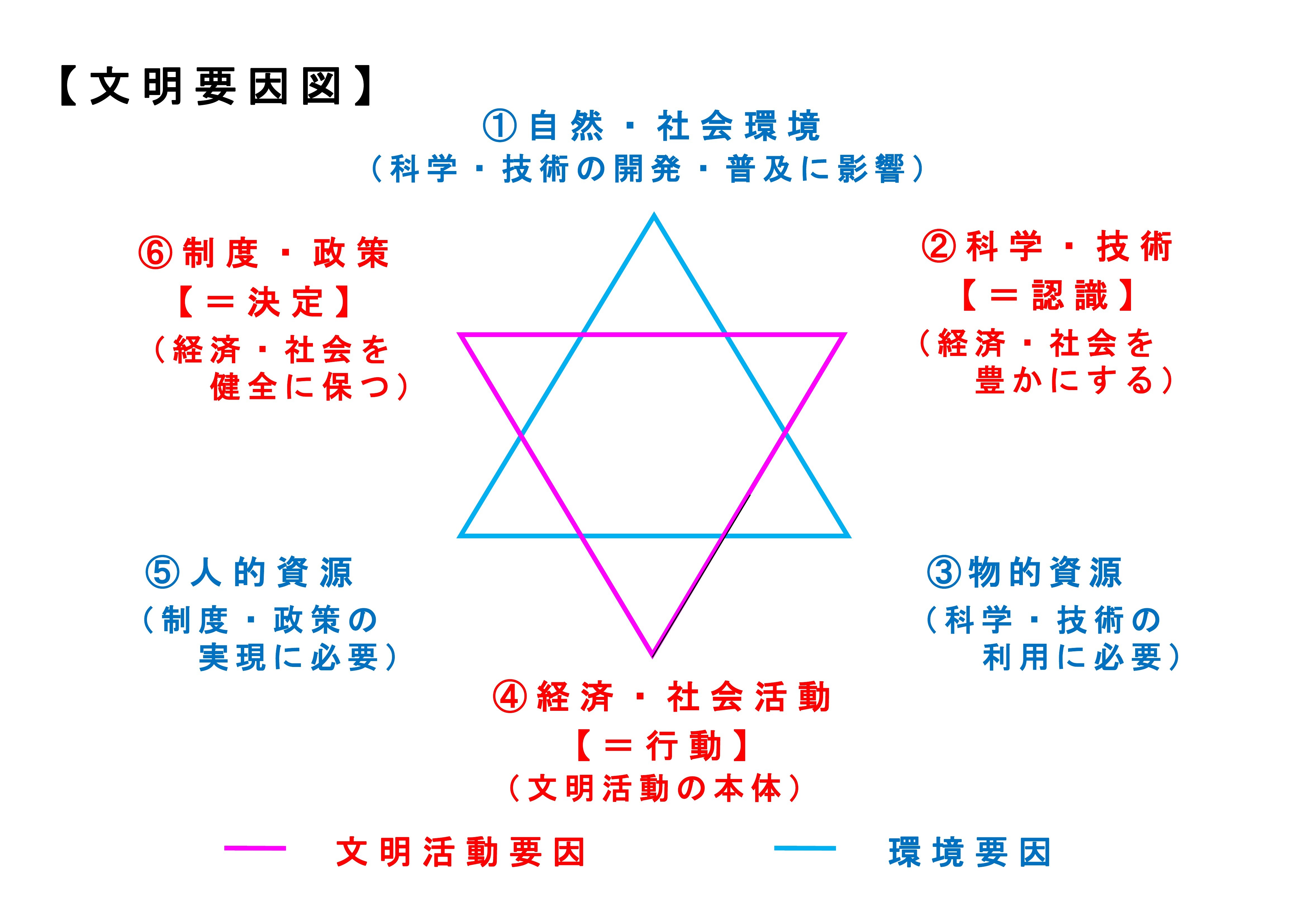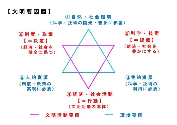 文明には、ダビデの星あるいは籠目の図形(✡)で表わせるような、6つの要因があると思います。