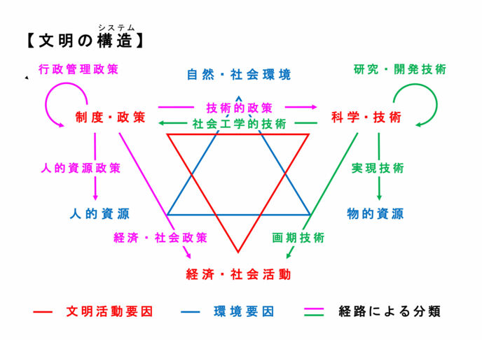 この六要素を詳しく言うと、科学・技術、経済・社会活動、