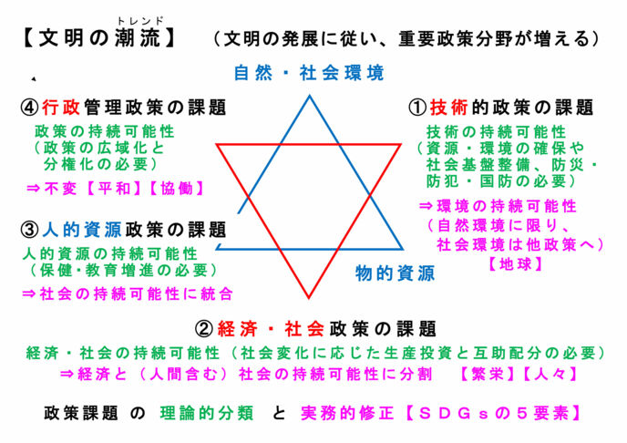 ⑤環境(=技術)、経済、(人間含む)社会、政策の