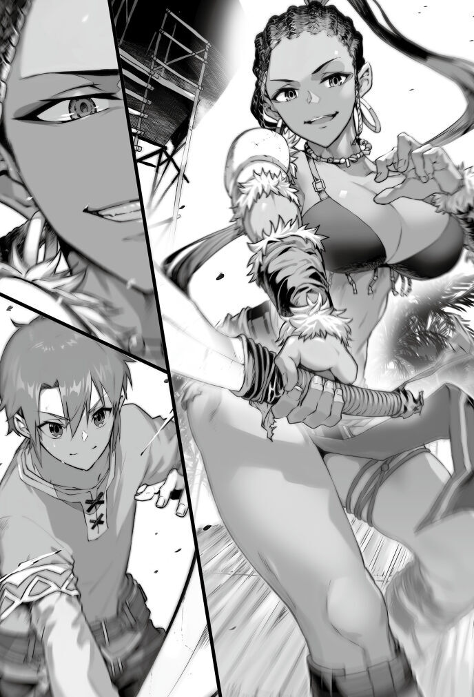 アマゾネスたちは全員日に焼けた肌をしているが、このソロルという女性はさらに一段と色の濃い小麦色で、そしてもの凄いグラマラスな身体付きをしている。要するに巨乳だ。