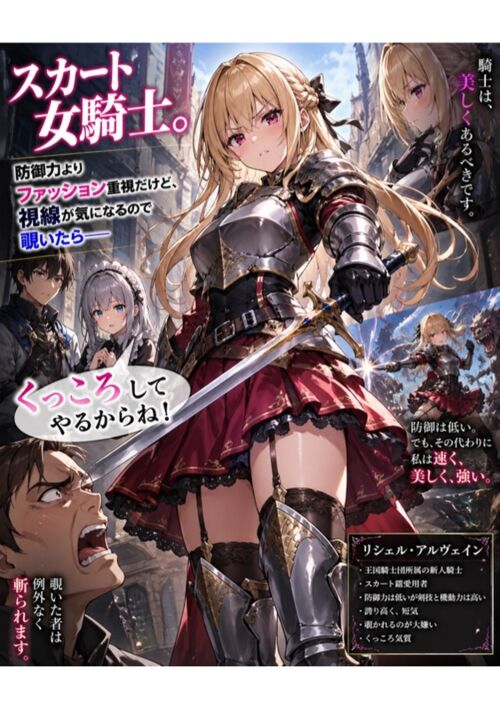 これは、常識外れの装備で戦場を駆けるひとりの女騎士が、嘲笑と視線を斬り裂きながら、自分だけの「強さ」を証明していく物語。