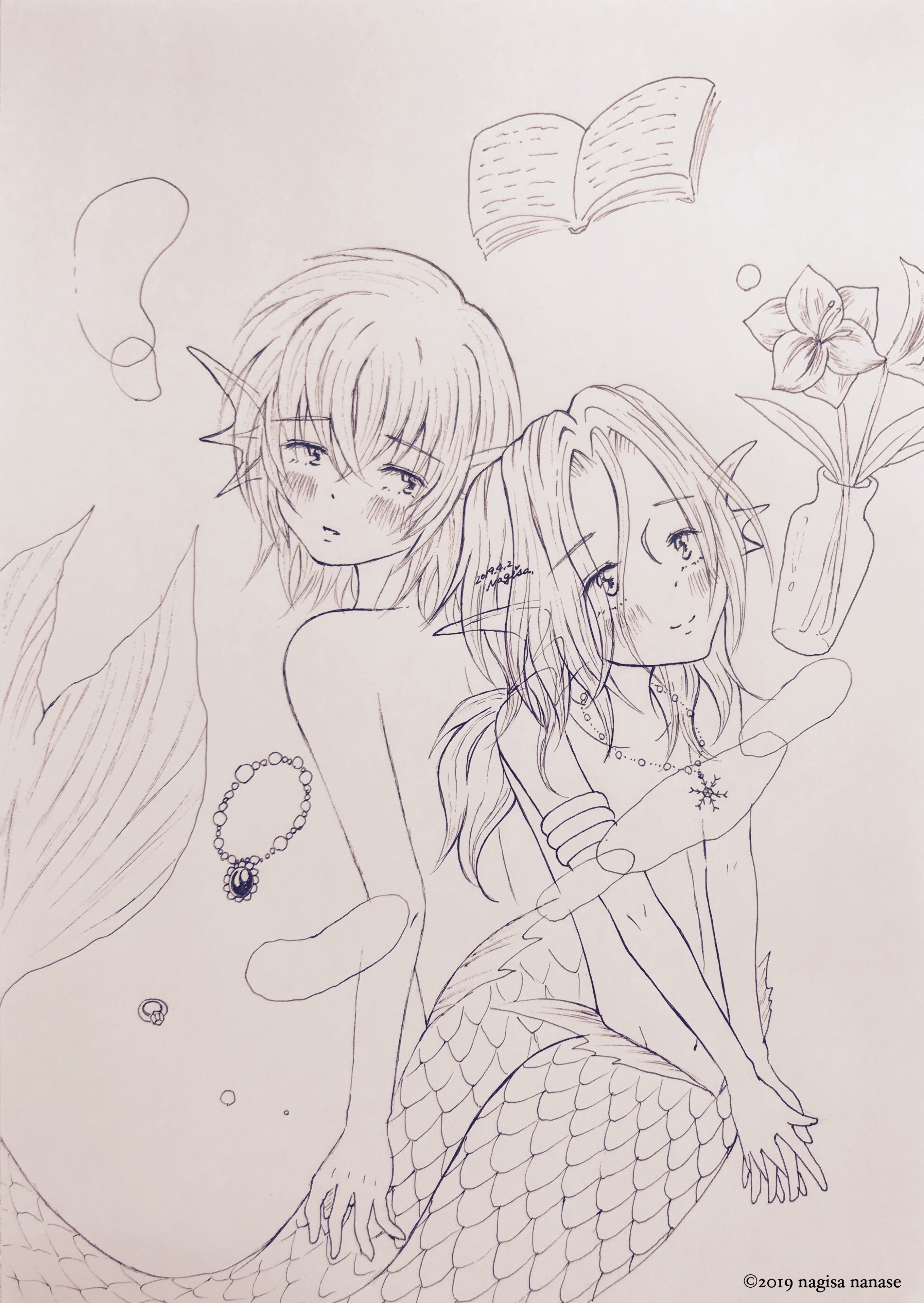 透き通るような赤い花弁を自慢げに見せ付ける人魚が一人。アマリリスという名も知らないまま。キラキラ輝くサファイアのような瞳は真昼の太陽光まで一緒に持ち帰ってきたようでした。一つに束ねた青い髪も、青い尾も、心なしか艶めいているようです。