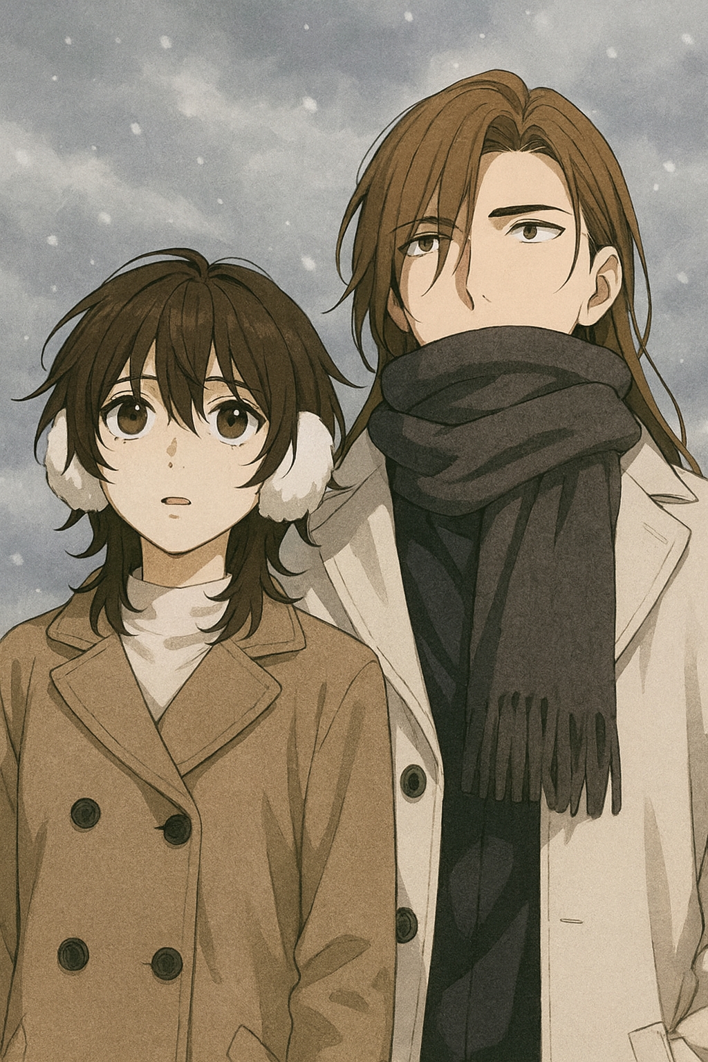 ちらちらと雪が舞いだした。細かく軽い雪。風が強く弱く吹き、たたずむ二人の姿を時おり見えなくする。